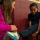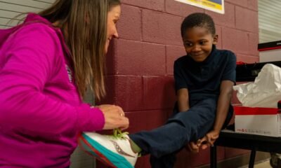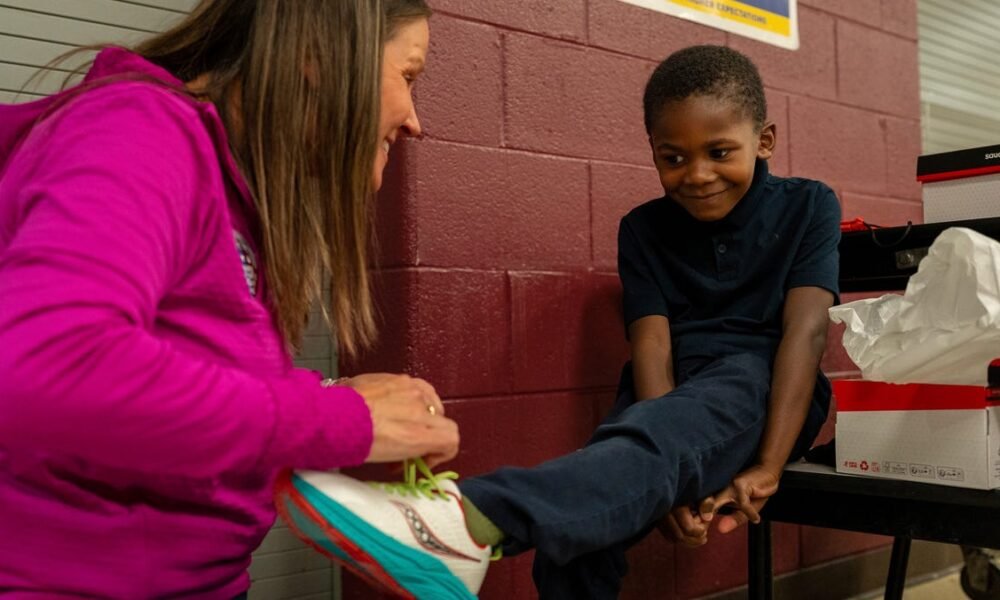 John R. King college students take a look at out their new trainers John R. King Academy college students attempt on new footwear they obtained for...