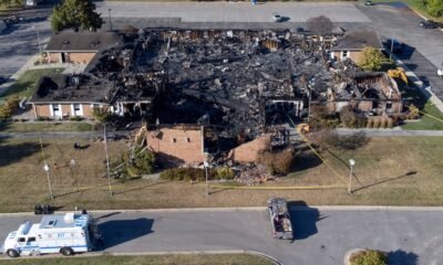 Michigan Church Capturing: Aerial Video legt schade van aanval huge Dronebeelden van de kerk van Jezus Christus van de heiligen der Laatste Dagen in Grand Blanc...
