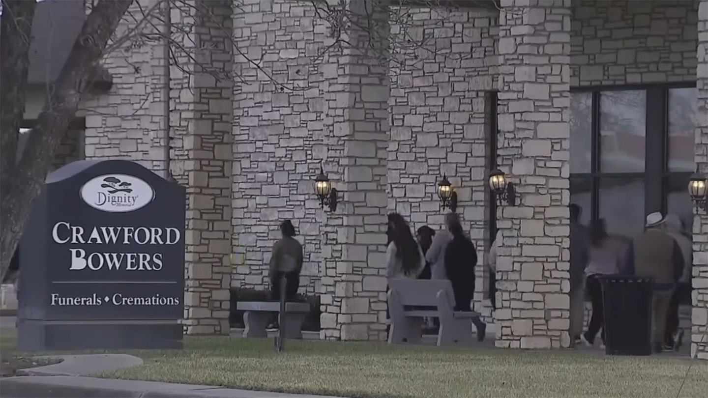 Mourners attend the funeral of fallen police officer Elijah Garretson at Crawford Bowers Funeral House in Killeen, Texas, on January 13, 2026. (FOX7)