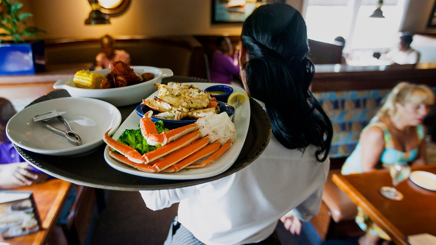 A waitress wears a drawer a lobster kettle and a crab trio dish in a pink lobster restaurant in Yonkers, New York, US, on Thursday, July 24, 2014. (Michael Nagle / Bloomberg by way of Getty Photographs / Getty photos)