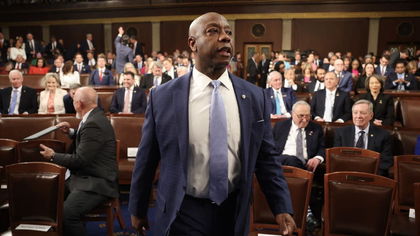 Senator Tim Scott, RS.C., attends the tackle of US President Donald Trump on a joint session of the congress within the US Capitol in Washington, DC, on March 4, 2025. (Win McNamee/Pool/AFP through Getty Photos/Getty photos)