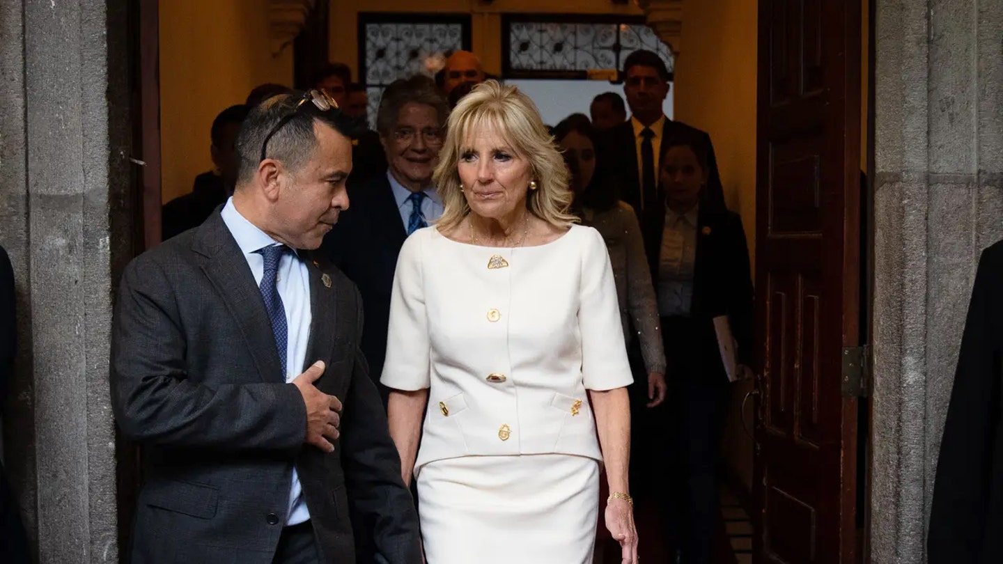 The primary woman Jill Biden talks to her senior adviser Anthony Bernal for a speech within the Palace Carondline in Quito, Ecuador, on Could 19, 2022. (In Schaff/Pool/AFP through Getty photographs)