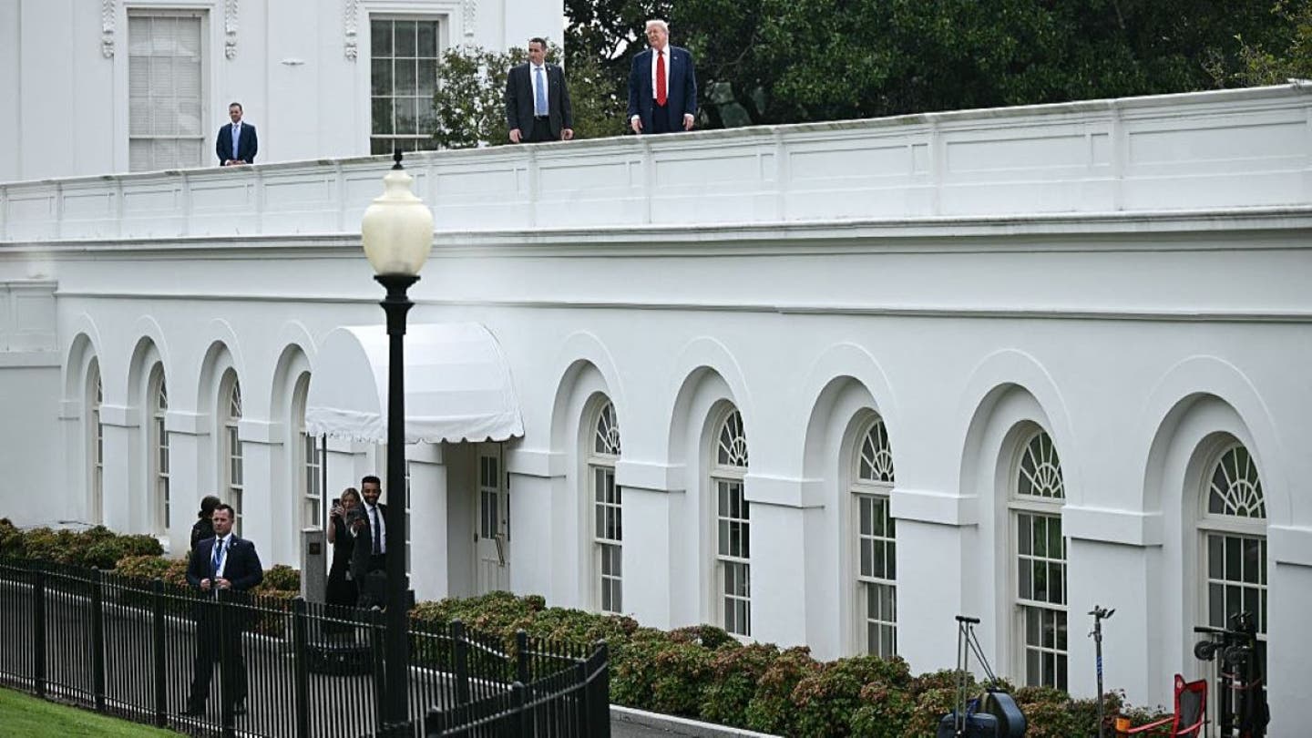 President Donald Trump appeared on the roof of the White Home on Monday, which indicated that he was assessing doable renovations for the presidential residence.