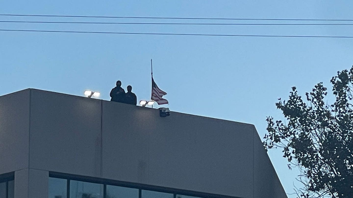 That was not the one change from the night time earlier than. On the roof of the ability there was a number of armed ice officers and an American flag that had not been there the night time earlier than. Some observers thought that the flag flew on half employees for Charlie Kirk, however you’ll be able to decide the picture your self.
