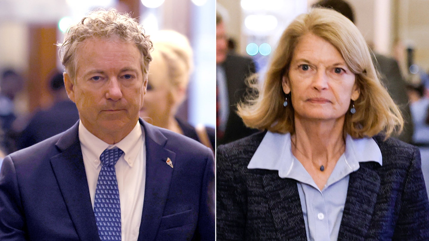 Left: Sen. Rand Paul, R-Ky., arrives on the U.S. Capitol in Washington, DC, on September 26, 2023; Proper: Sen. Lisa Murkowski, R-Ak., leaves a gathering with Senate Republicans on the U.S. Capitol on Nov. 16, 2022 in Washington, D.C. (Anna Moneymaker/Getty Photos)