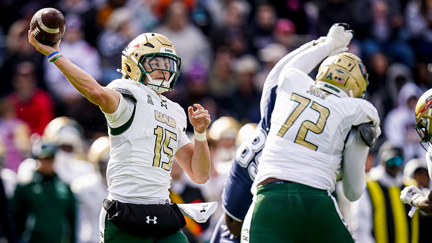 UAB Blazers quarterback Ryder Burton (15) throws a go towards the UConn Huskies within the second quarter at Pratt & Whitney Stadium at Rentschler Subject in East Hartford, Connecticut, on November 1, 2025. (David Butler II/Imagn Photos)