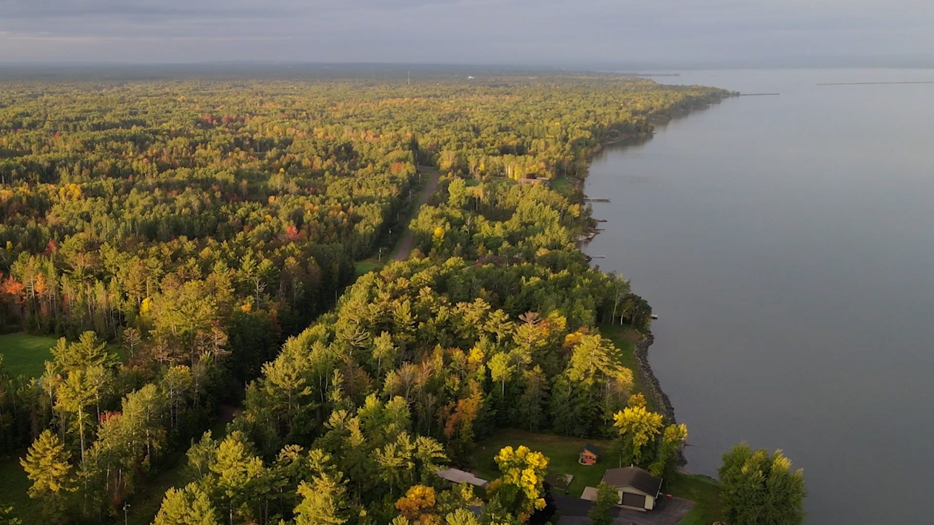 Lovely Drone view of Lake Superior and Ashland, Wisconsin